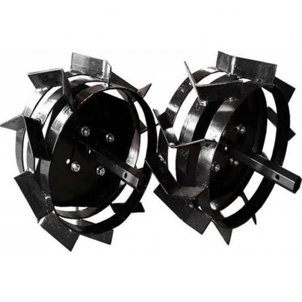 Set roti metalice pentru motosapa / motocultor Media Line, diametru 400 mm, manicot hexagonal 32 mm. Pentru MS 9500CF si MS 15000CF Ajuta la tractarea accesoriilor (plug, cultivator, etc.) Se monteaza in locul frezei. Diametru: 400 mm.