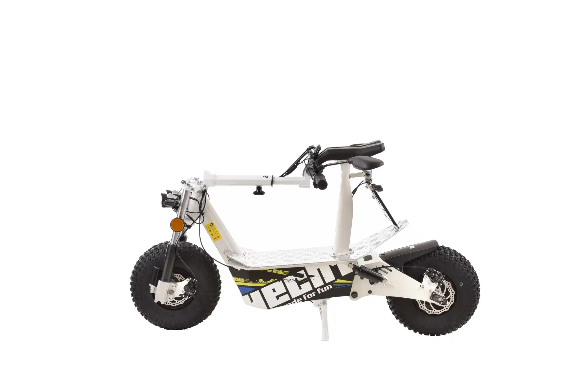 Trotineta electrica alimentata de un motor fara perii de 3000 W cu omologare pentru functionare pe drumurile publice. Viteza maxima este limitata la 45 km/h, deci poate fi condusa de persoane cu varsta de peste 15 ani cu permis de conducere grup AM.