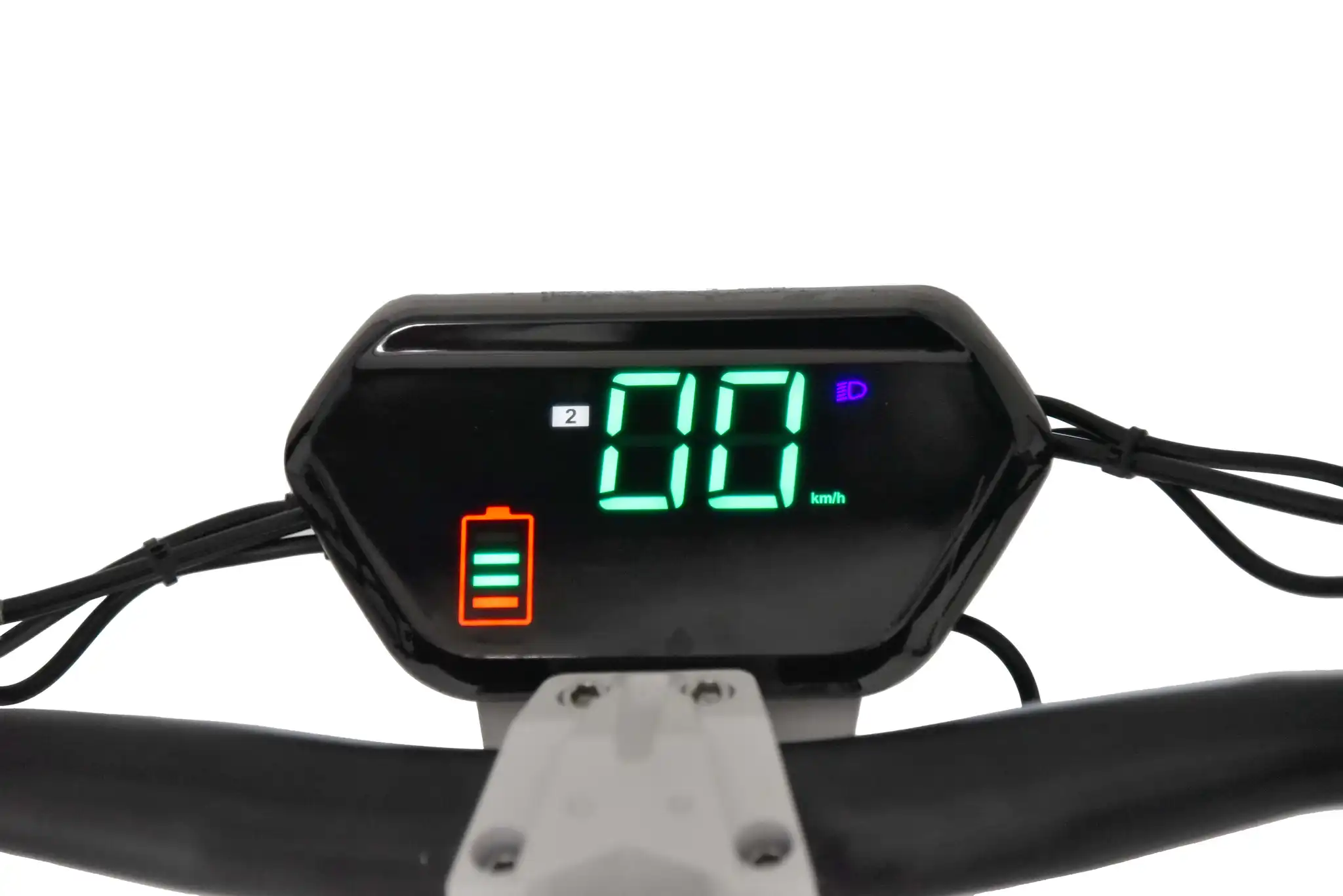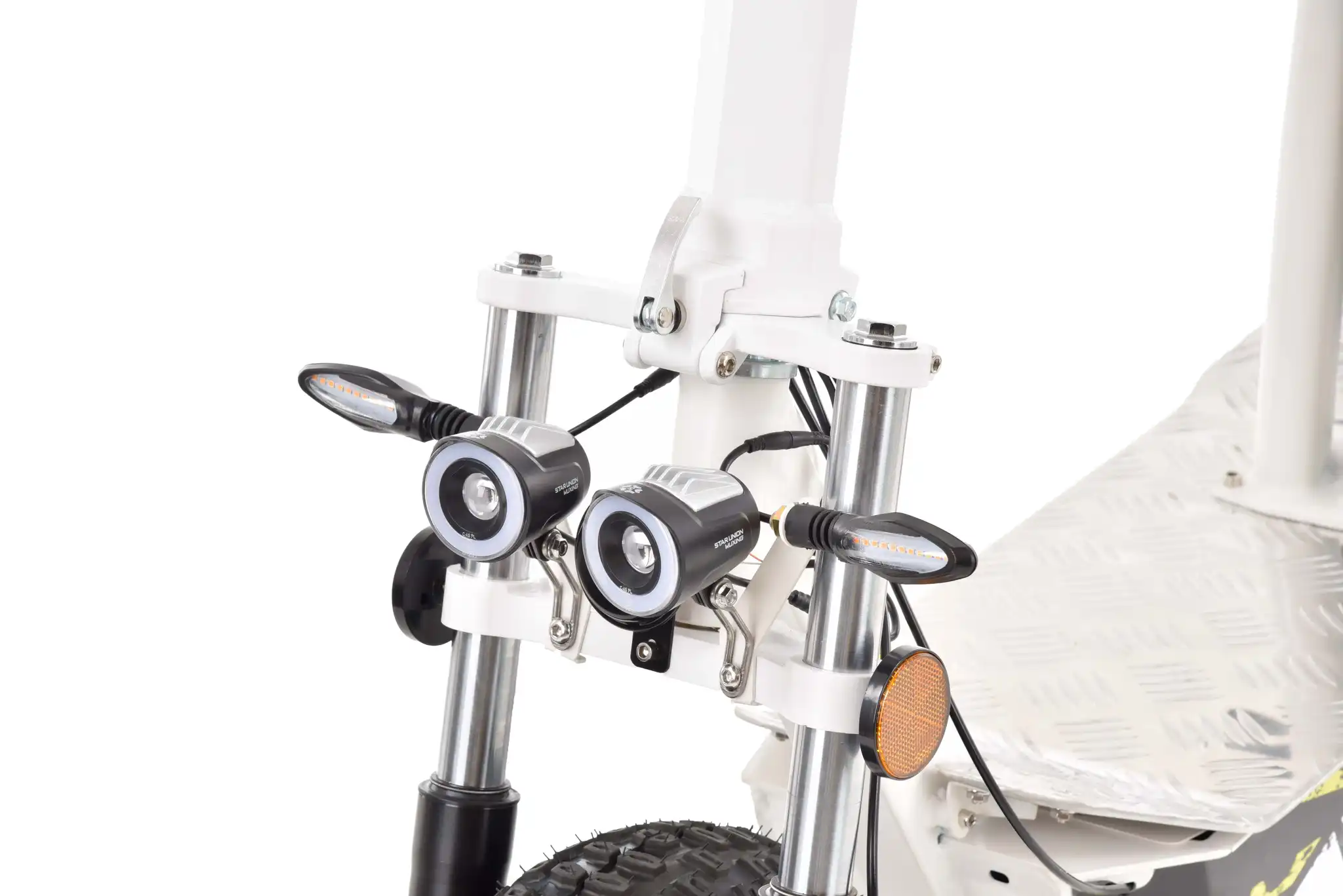 Aspectul pradator si atractiv al scuterului nu va atrage doar adolescentii. Motorul electric de 3000 W ofera scuterului agilitate si putere. Anvelopele late de 145 / 70-6", cu un model aspru al benzii de rulare, va vor permite sa calatoriti pe teren neasfaltat. Rotile sunt echipate cu frane cu disc. Trotineta este echipata cu o pereche de faruri cu LED, stop cu LED si semnalizatoare cu LED. Ghidonul este dominat de un panou LCD mare care afiseaza clar toate informatiile importante. Amortizoare fata si spate. Placa anti-alunecare.