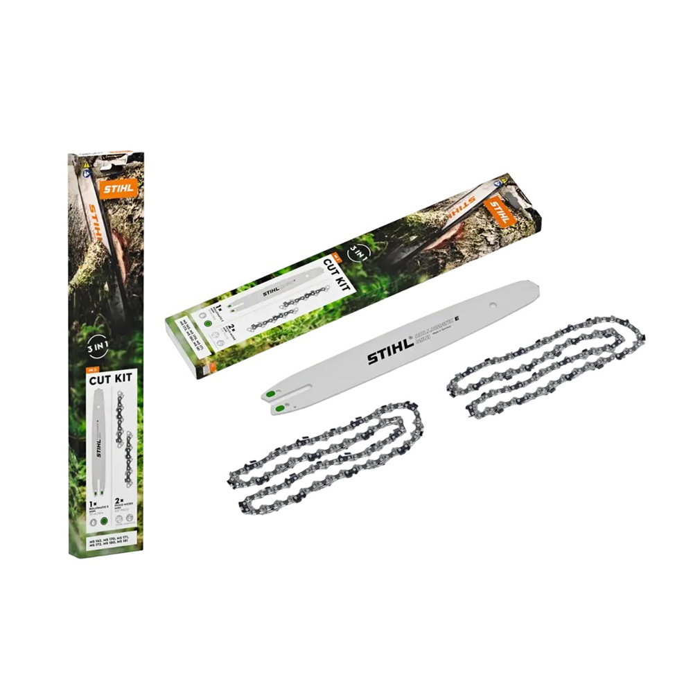 STIHL CUT KIT va puteti asigura in mod proactiv ca motoferarastraiele dvs. ofera o performanta de taiere ridicata si constanta. Il puteti utiliza pentru a schimba usor si independent lantul si sina de ghidaj oriunde v-ati afla. Instructiunile noastre pentru schimbarea ansamblului taietor, pe care le puteti accesa prin intermediul codului QR de pe ambalajul kitului dvs. de taiere, va vor ghida prin instalare. Acest lucru inseamna ca utilajul dvs. de gradina STIHL este rapid, din nou gata de utilizare.