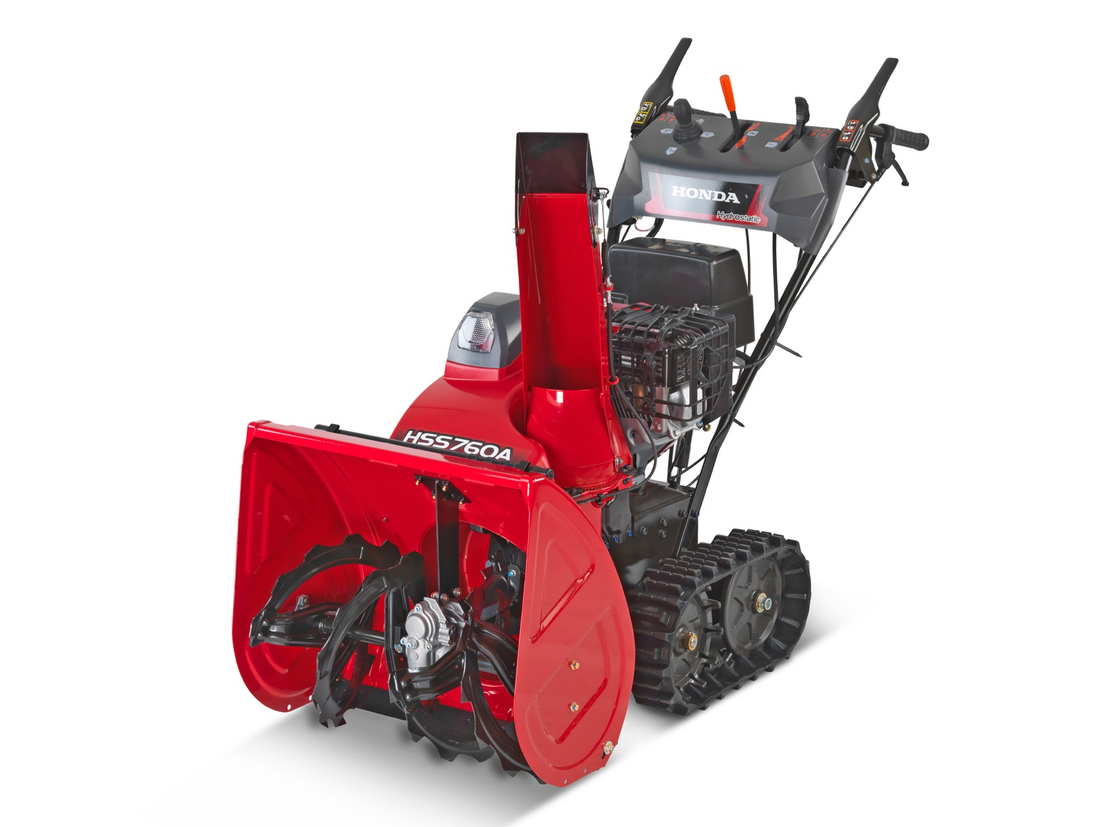 control amplu chiar si pe alei pietonale sau pe drumuri in panta. Senilele de cauciuc pliabile la temperatura scazuta permit modelului Honda HSS 760 A ETD sa aiba o aderenta sigura. Ambreiaj de directie prezent.