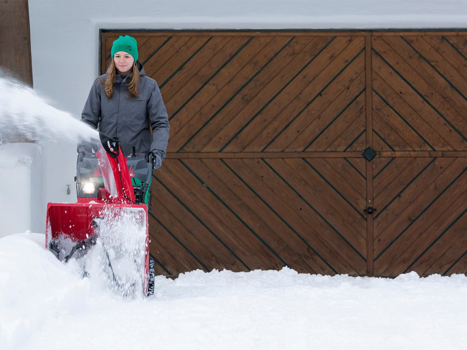 15 m. Cu joystick de control al jgheabului pentru reglarea manuala a ejectiei zapezii.