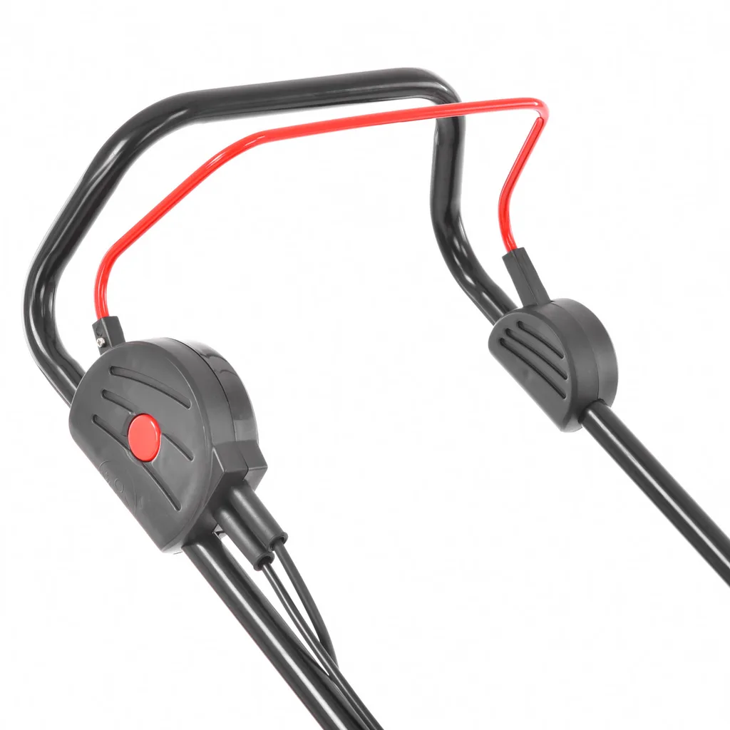 Avantajul acestei masini de tuns iarba este, de asemenea, maneta de comutare pe toata latimea manerului, datorita careia este posibil sa controlati masina de tuns iarba cu orice mana si astfel sa aveti cealalta mana libera, de exemplu, pentru a manipula cablul in siguranta. Pentru manipulare si transport puteti folosi manerul comod direct pe capacul motorului, la parcare si transport veti aprecia cu siguranta posibilitatea de a plia rapid manerul prin simpla deblocare a celor doua manete in punctul de conectare cu sasiul. Desigur, exista un buton de pornire de siguranta sau un limitator de tensiune pentru cablul de alimentare. Fara indoiala, sunt prezente butonul de pornire de siguranta sau dispozitivul de reducere a tensiunii cablului de alimentare.