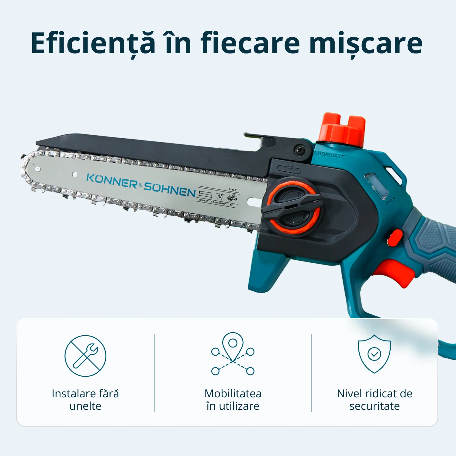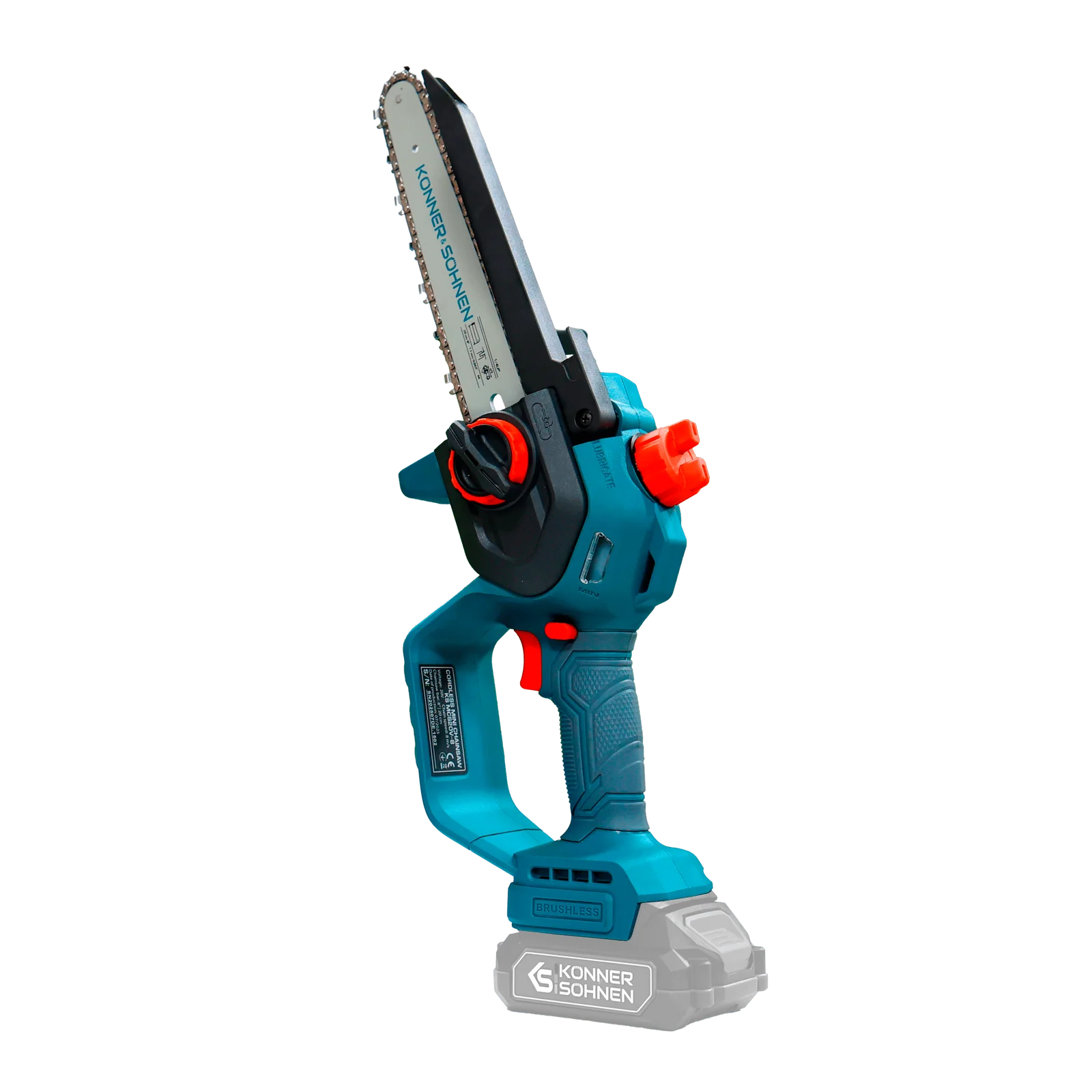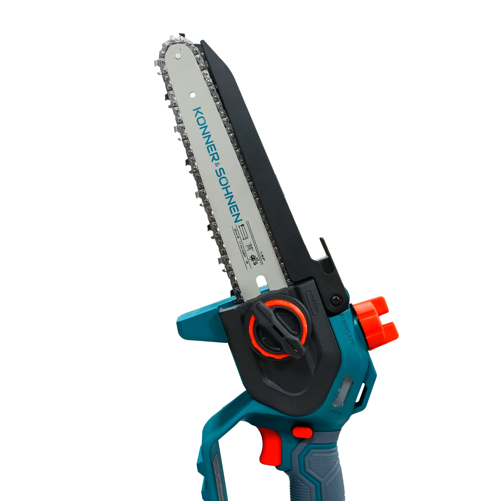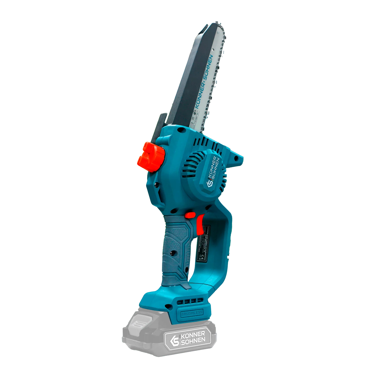 KS MCS20V-8 (fara baterie si incarcator) marca Konner & Sohnen, cu lama de 8″ (20 cm) si viteza a lantului de 8 m/s, este un instrument fiabil pentru lucrarile din gradina. Motorul puternic fara perii, cu