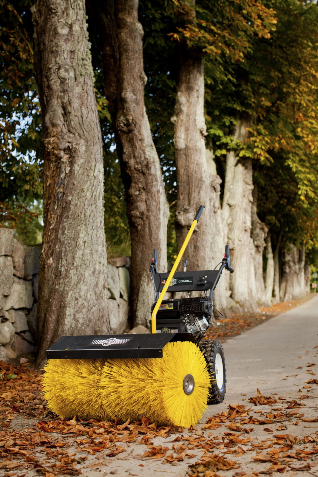 Perie puternica si eficienta cu o latime de 80 cm si un diametru de 45 cm pentru curatarea zapezii, frunzelor, crengutelor si pietrisului pe trotuare, zone de parcare, alee, santiere etc.