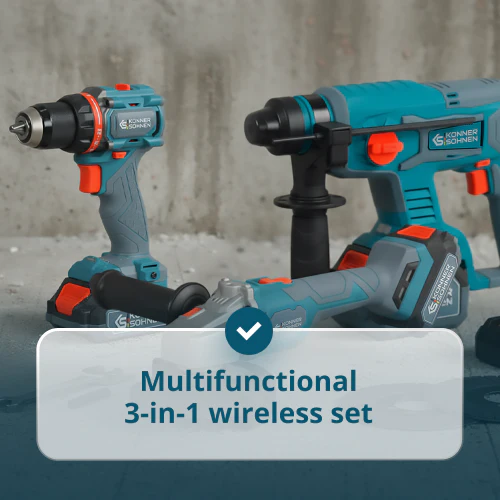Set Master 3-in-1 fara fir Konner & Sohnen KS RHAGD 20V SET 3 - Masina de gaurit si insurubat, Ciocan rotopercutor, Polizor unghiular