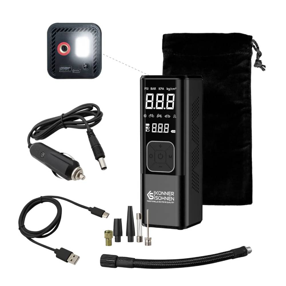 Compresorul KS P20 permite umflarea anvelopelor în câteva minute fără necesitatea conectării la o sursă de alimentare. Echipat cu funcția de oprire automată - întrerupe automat alimentarea cu aer la atingerea parametrilor setați.