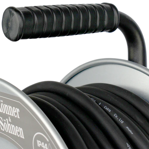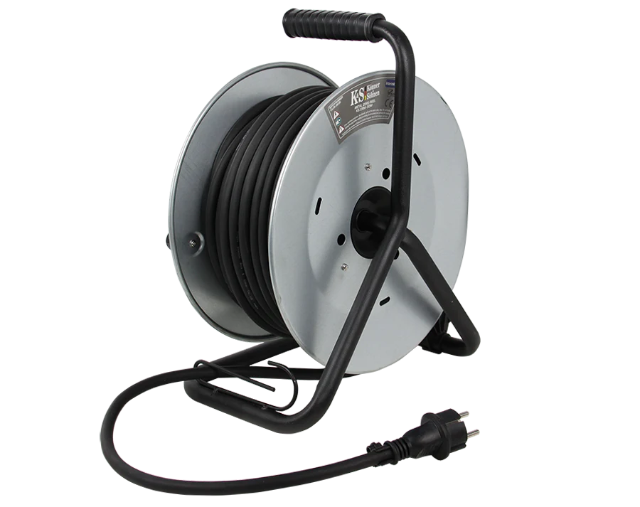 Tamburul este fabricat din metal special intarit, avand o structura robusta din metal rezistent la daune. Este echipat cu o manere ergonomic din cauciuc pentru o manevrare confortabila, cu un sistem de prindere a cablului, un suport pentru reglarea directiei cablului si un blocaj pentru prevenirea desfasurarii accidentale a tamburului. Lungimea cablului atinge 30 de metri, fiind adecvat pentru conectarea simultana a pana la patru aparate electrice la distanta.