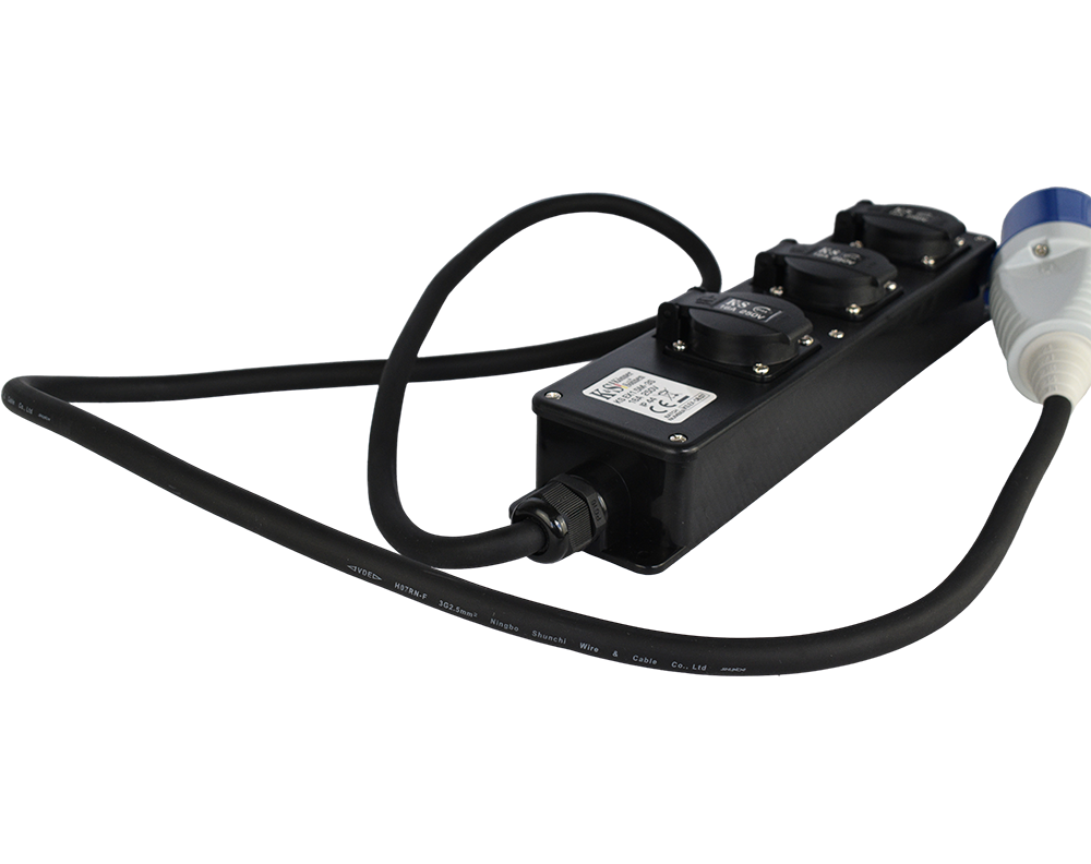 Pe o parte, prelungitorul are o priză de 32A, iar pe cealaltă parte – trei prize de 16A, permițând conectarea unui aparat cu o priză standard de 16A la o sursă de energie cu o priză de 32A. Acesta suportă o putere totală de până la 5 kW.
