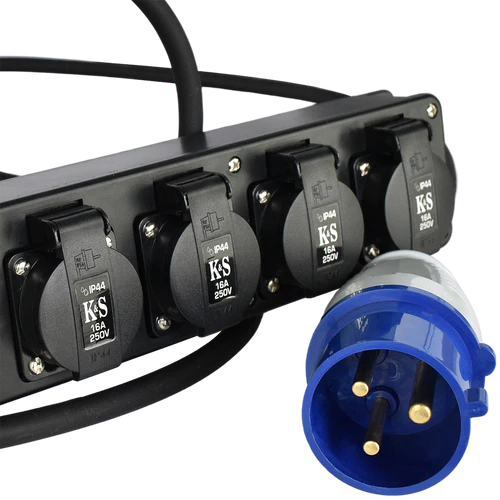 Pe o parte, prelungitorul are o priza de 32A, iar pe cealalta parte – patru prize de 16A, permitand conectarea unui aparat cu o priza standard de 16A la o sursa de energie cu o priza de 32A. Acesta suporta o putere totala de pana la 5 kW.