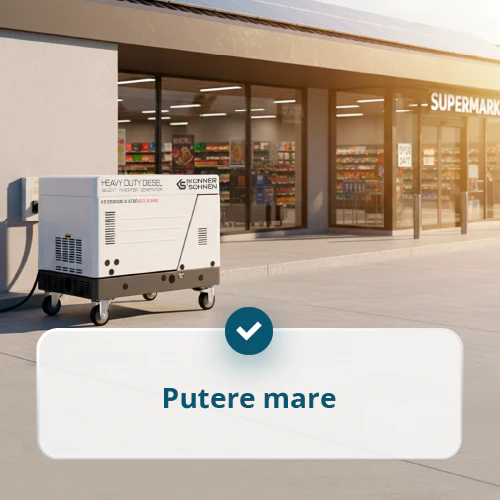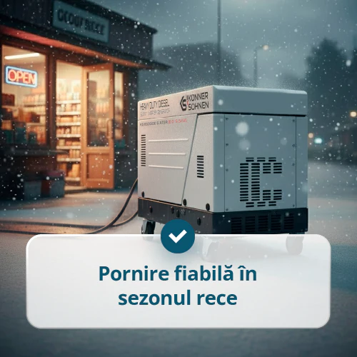 Generatorul porneste automat la intreruperea curentului, asigurand alimentare neintrerupta.