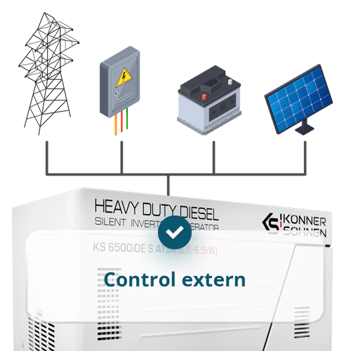 Permite conectarea dispozitivelor externe de control, oferind posibilitatea de pornire/opriere a generatorului si integrarea cu sisteme automate ce functioneaza prin contacte uscate: invertoare solare, sisteme UPS si altele.