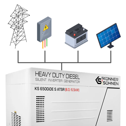 Generatorul suporta conectarea la sistemul de pornire automata de rezerva (ATS) – generatorul porneste automat la intreruperea energiei electrice - fara interventia utilizatorului.