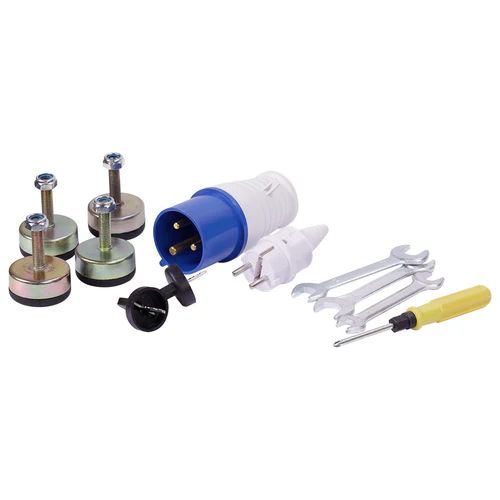 Generatorul este echipat cu accesorii suplimentare: priza portabila de putere 3P+E+N, 16A, 400V, priza portabila de putere 2P+E, 32A, 230V, cheie fixa 8×10 mm, cheie fixa 12×14 mm, cheie fixa 17×19 mm, surubelnita dubla 6.0 mm PH2.