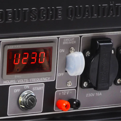 Panoul de control ergonomic al generatorului permite gestionarea facila a functiilor datorita dispunerii convenabile a acestora: ecran LED modern (contor de ore de functionare, frecventa, tensiune), pornire electrica (optional), intrerupator automat la suprasarcina, senzor de nivel scazut al uleiului, prize, conector de impamantare, borne si altele.