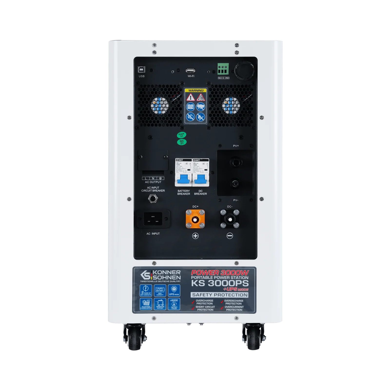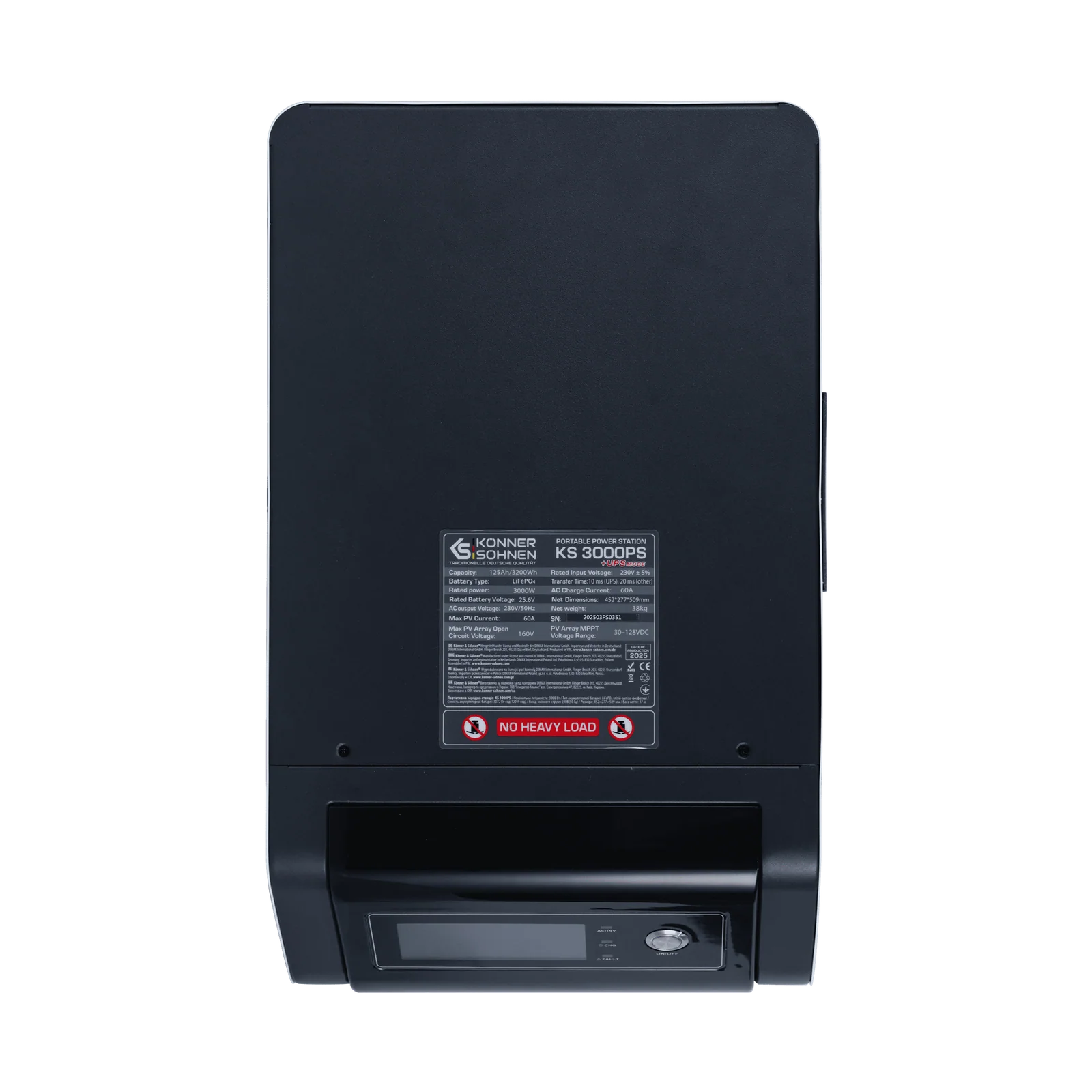Konner & Sohnen KS 3000PS — este nucleul unui hub energetic hibrid cu o centrala electrica multifunctionala 3-in-1, care combina un invertor cu unda sinusoidala pura, un controler MPPT si o baterie LiFePO₄ de 3,2 kWh. Statia permite incarcarea din patru surse – retea, panouri solare, baterie externa sau generator de curent continuu. Datorita iesirii DC de 24V, permite integrarea cu generatoarele KS 24V-DC prin sistemul Tandem Power, care optimizeaza automat functionarea si reduce consumul de combustibil. Fiabila si silentioasa — aceasta statie este pregatita pentru functionare autonoma 24/7 acasa, in afaceri sau in caz de intreruperi de curent.