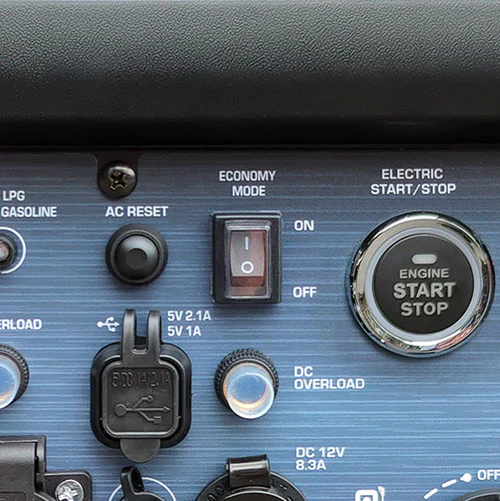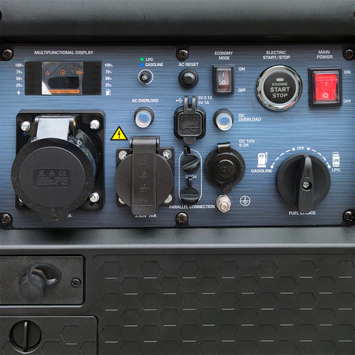 Toate functiile sunt dispuse convenabil pe un panou de control ergonomic, care include un ecran LED multifunctional ce afiseaza contorul de ore de functionare, tensiunea si frecventa, precum si indicatori de stare care semnalizeaza suprasarcina, nivelul scazut de ulei si alte avertismente. In plus, panoul dispune de un buton de reset pentru repornirea sistemului de control, un conector pentru conectarea in paralel a generatorilor, doua porturi USB (5V/1A si 5V/2.1A), o priza de 230V si o borna de impamantare.