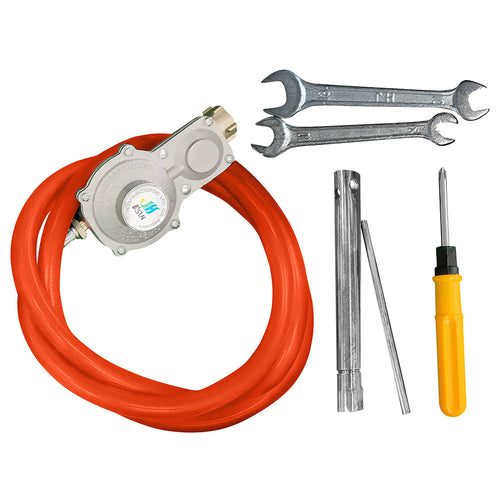 3. Regulator de reducere a presiunii montat pe furtun pentru a creste fiabilitatea sistemului de gaz. Acesta se fixeaza pe butelie (standard DIN 477), reduce presiunea si elimina riscul de suprasolicitare a conexiunii de gaz. Tot ce trebuie sa faceti este sa conectati generatorul la butelie si sa porniti motorul.