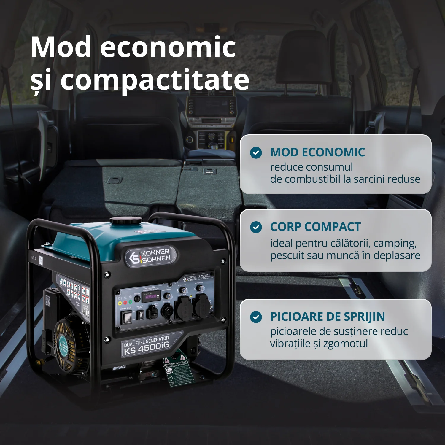 Unul dintre avantajele cheie ale modelului KS 4500i este versatilitatea sa. Este potrivit pentru o gama larga de aplicatii, de la alimentarea de urgenta la lucrul in aer liber si activitati recreative. KS 4500i este disponibil la un pret aproape identic cu cel al generatoarelor clasice pe benzina cu putere similara. Obtineti un generator fiabil si de inalta calitate la un pret accesibil.