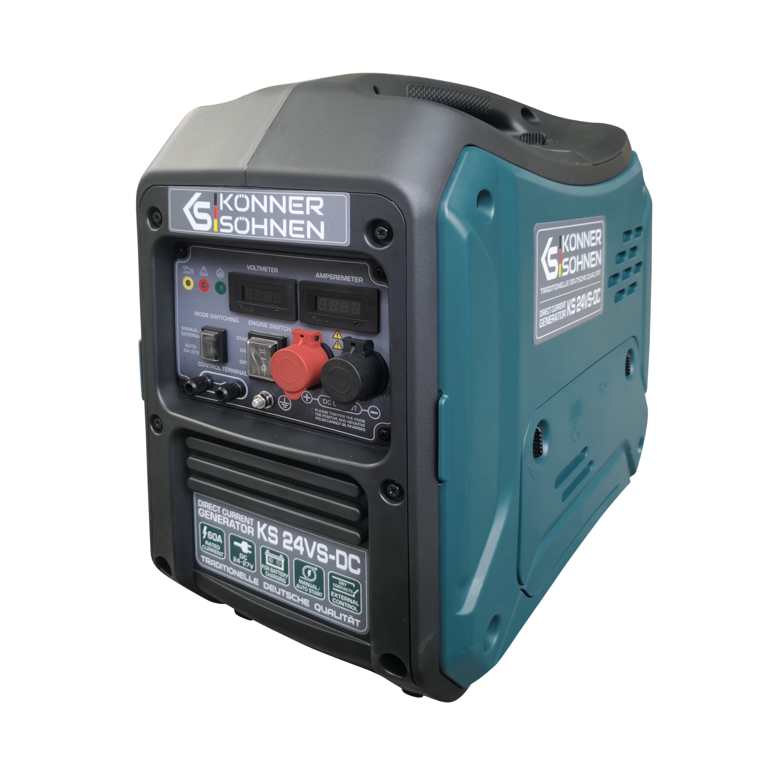 Generatorul DC 24–27V 60A al mărcii germane Könner & Söhnen® este un încărcător de rezervă puternic și fiabil pentru acumulatori de 24V. Încărcarea directă de la generatorul DC este extrem de eficientă și nu necesită conversie de tensiune. Economie de combustibil față de generatoarele AC obișnuite. Dispozitivul are moduri AUTO și MANUAL/EXTERNAL. Panoul include indicatori de tensiune, suprasarcină și nivel de ulei. Ideal pentru sisteme 24V: solare, echipamente medicale, supraveghere sau întreținerea acumulatoarelor auto.