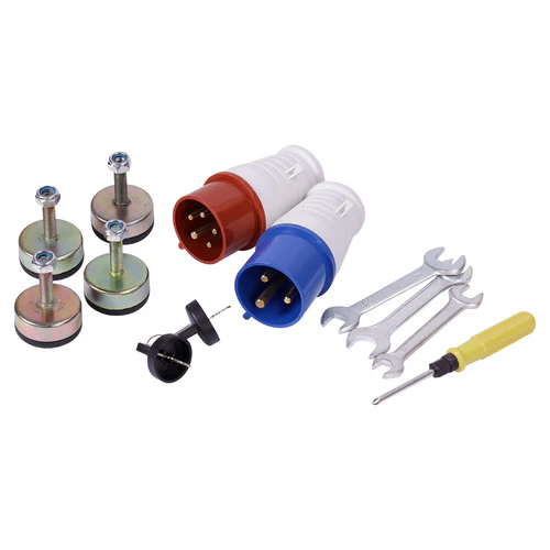 Generatorul este echipat cu accesorii suplimentare: priza portabila de putere 3P+E+N, 16A, 400V, priza portabila de putere 2P+E, 32A, 230V, cheie fixa 8×10 mm, cheie fixa 12×14 mm, cheie fixa 17×19 mm, surubelnita dubla 6.0 mm PH2.