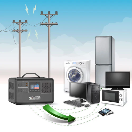 Aceste statii moderne de alimentare pot indeplini functia unui bloc de alimentare neintreruptibila (UPS) - un dispozitiv care asigura furnizarea automata a energiei in caz de defectiune a retelei electrice. In doar cateva milisecunde, statia va transfera tensiunea catre aparate. Statiile au o capacitate de stocare a energiei mult mai mare decat UPS-urile obisnuite.