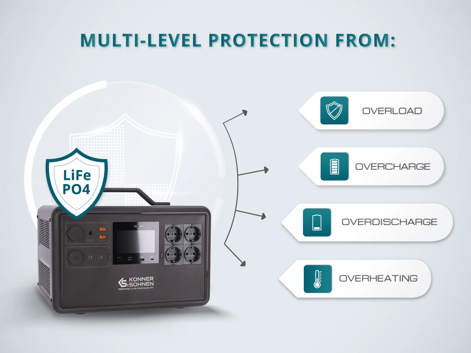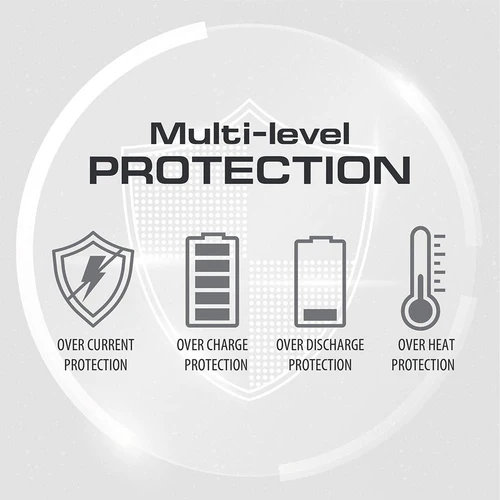 Protectie la mai multe nivele impotriva: suprasarcinii, incarcarii excesive, descarcarii profunde si supraincalzirii.