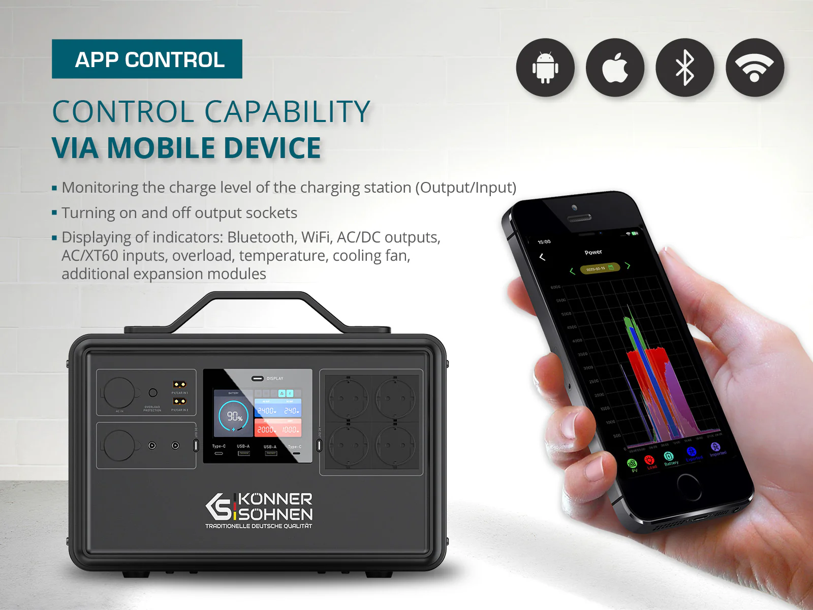 Permite gestionarea statiei electrice portabile direct prin aplicatie: monitorizarea nivelului de incarcare, pornirea si oprirea porturilor de iesire, lanternei. Aplicatia permite gestionarea simultana a mai multor dispozitive.