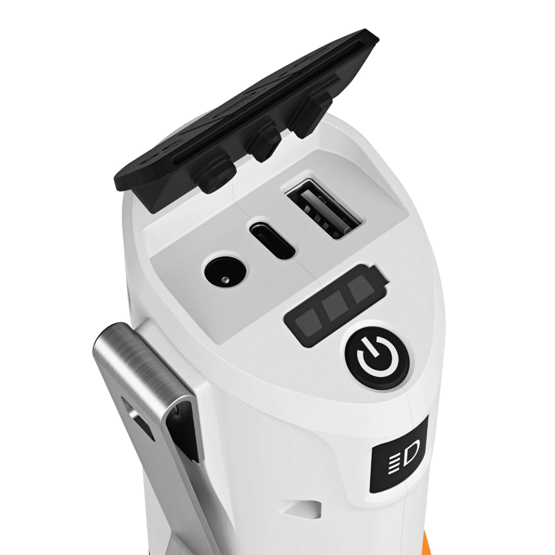 Comutatorii separati pentru alimentarea cu energie electrica si lanterna fac STIHL PS 1 usor de utilizat. Indicatorul de stare LED va permite intotdeauna sa urmariti nivelul de sarcina. PS 1 este echipat cu un carlig de centura metalica pentru un transport usor si convenabil.