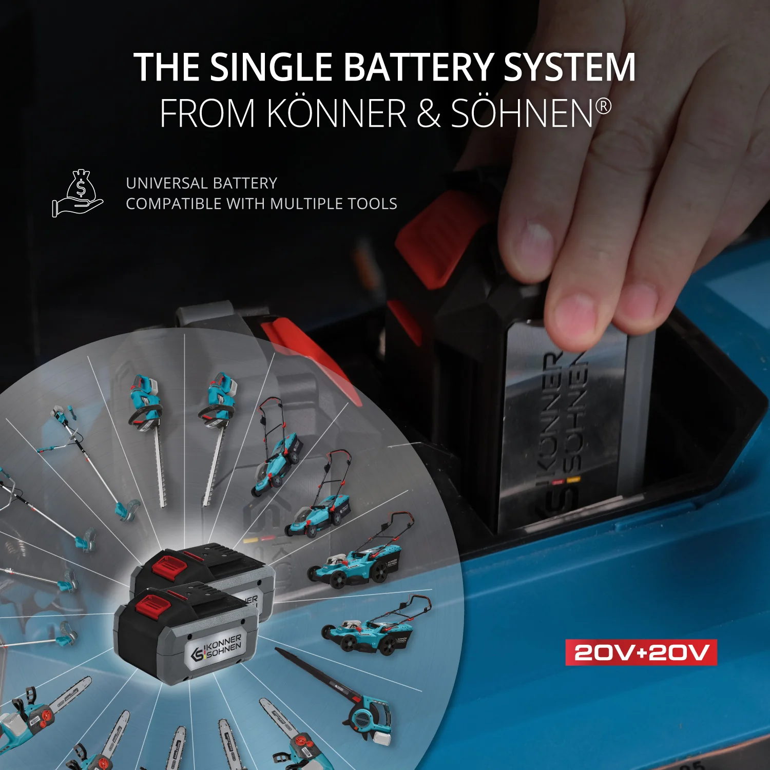 O mare parte din costul uneltelor pe acumulator este reprezentata de baterii, iar posibilitatea de a folosi acelasi acumulator pentru mai multe dispozitive permite economii semnificative. Acumulatorii universali* Konner & Sohnen® sunt compatibili cu toate uneltele de gradina pe acumulator din gama brandului, astfel incat utilizatorul trebuie sa achizitioneze o singura data un acumulator cu capacitatea dorita si un incarcator, pe care le poate folosi ulterior cu orice dispozitiv din aceasta linie.
