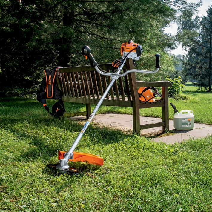 Motocoasa robusta, optimizata din punct de vedere al greutatii, cu maner pentru doua maini, STIHL ErgoStart, motor STIHL cu tehnologie 2-MIX si ECOSPEED STIHL.