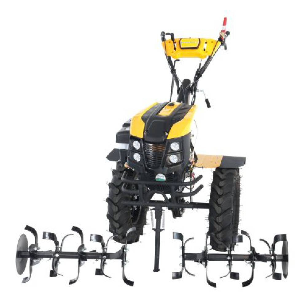 Motocultor pentru tractari grele, frezat, arat si alte operatiuni agricole, echipat cu roti mari 6.00x12, cu profil agricol, viteza de deplasare ridicata si aderenta buna.