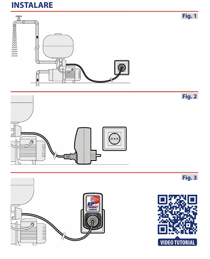 - Deconectati cablul de alimentare al pompei electrice de la priza, lasand punctul de alimentare deschis si goliti complet sistemul. (Fig. 2).