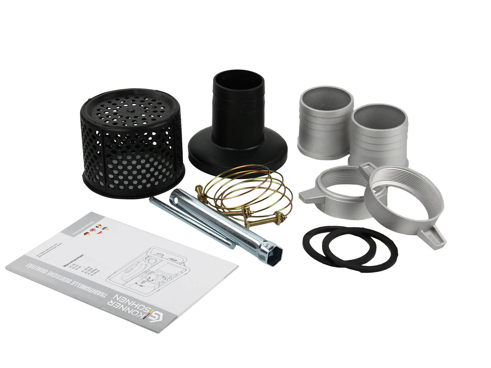 Motopompele sunt completate cu accesorii suplimentare: filtru de apa, set de montare, cheie pentru bujii, kit pentru conectarea furtunului.