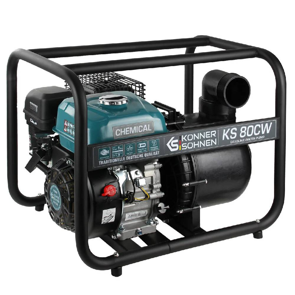 Carcasa motopompelor „Konner & Sohnen” este fabricata din aluminiu de inalta rezistenta prin turnare monobloc, fiind rezistenta la coroziune, temperaturi extreme si deformari. Motopompele sunt echipate cu un rezervor de combustibil din otel, de capacitate marita, care prelungeste durata de functionare fara realimentare.
