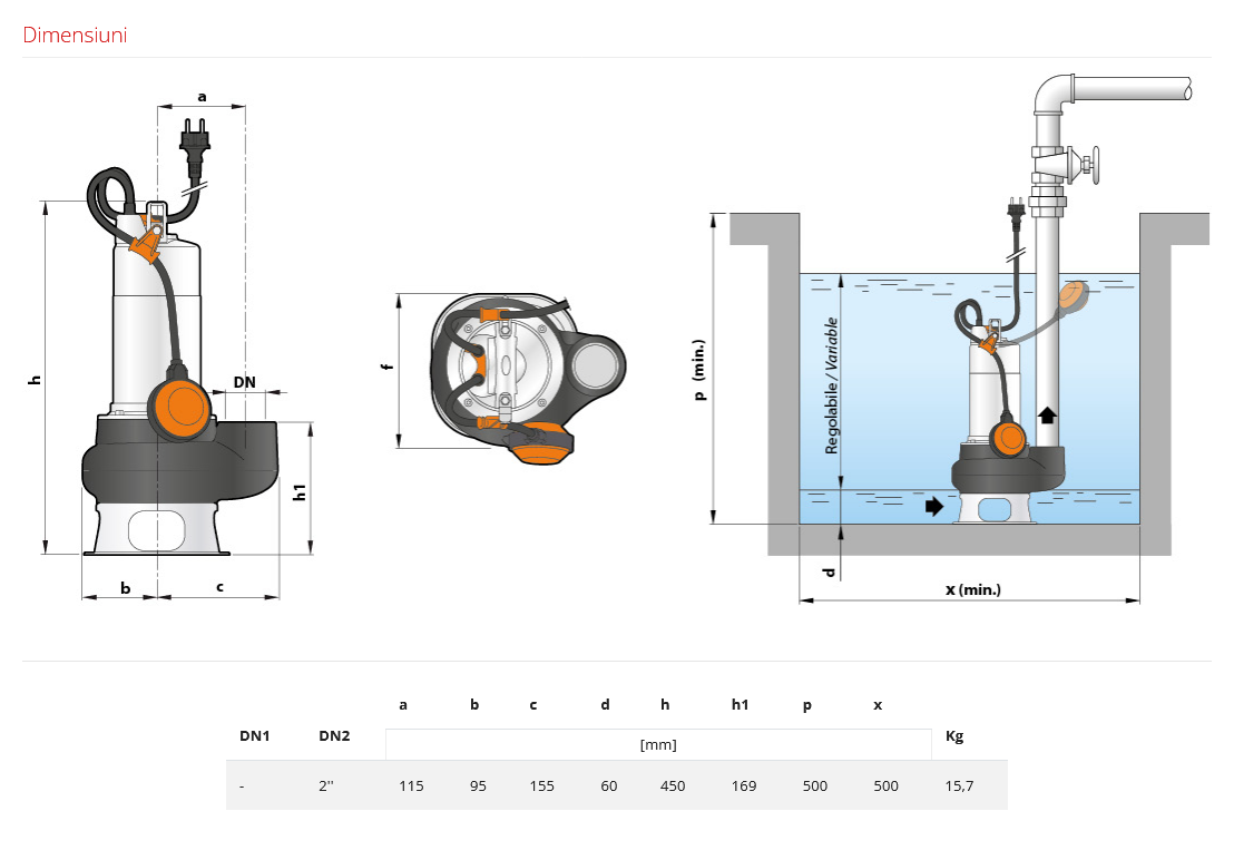 Electropompe sumersibile cu doua turbine - pasaj de trecere 50 mm