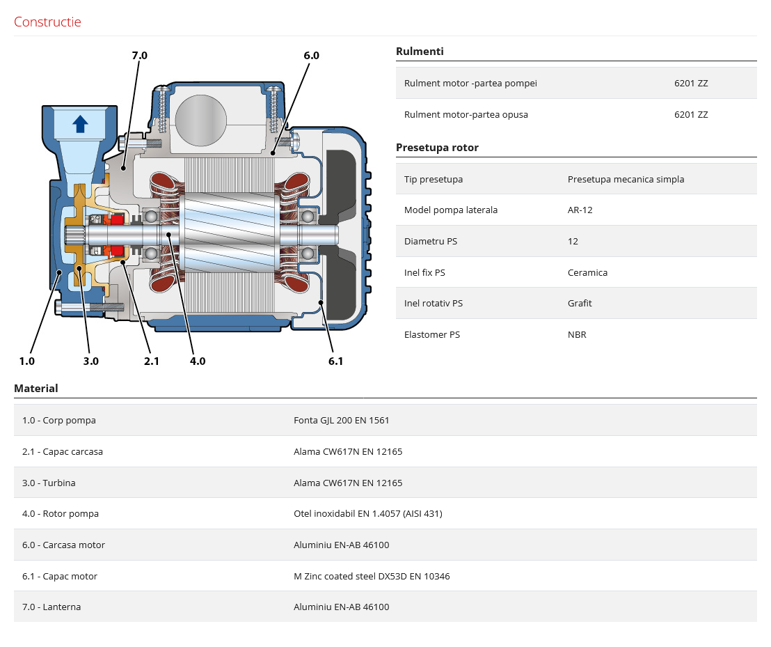Potrivite pentru utilizarea cu apa curata care nu contine particule abrazive si cu lichide care nu sunt agresive chimic fata de materiale din care este fabricat pompa. Caracteristicile hidraulice ale acestor pompe, combinate cu compactitatea lor, le fac potrivite pentru utilizare atat in aplicatii domestice, cat si industriale. Instalarea trebuie efectuata in zone inchise bine ventilate sau oricum protejate de intemperii.