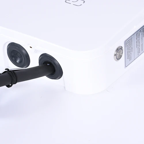 Carcasa robusta, realizata din materiale de inalta calitate, este prevazuta cu un buton de control. Indicatoarele luminoase de pe panoul frontal semnalizeaza starea: alimentare sau standby (indicator verde), incarcare (indicator albastru) si eventuale erori.