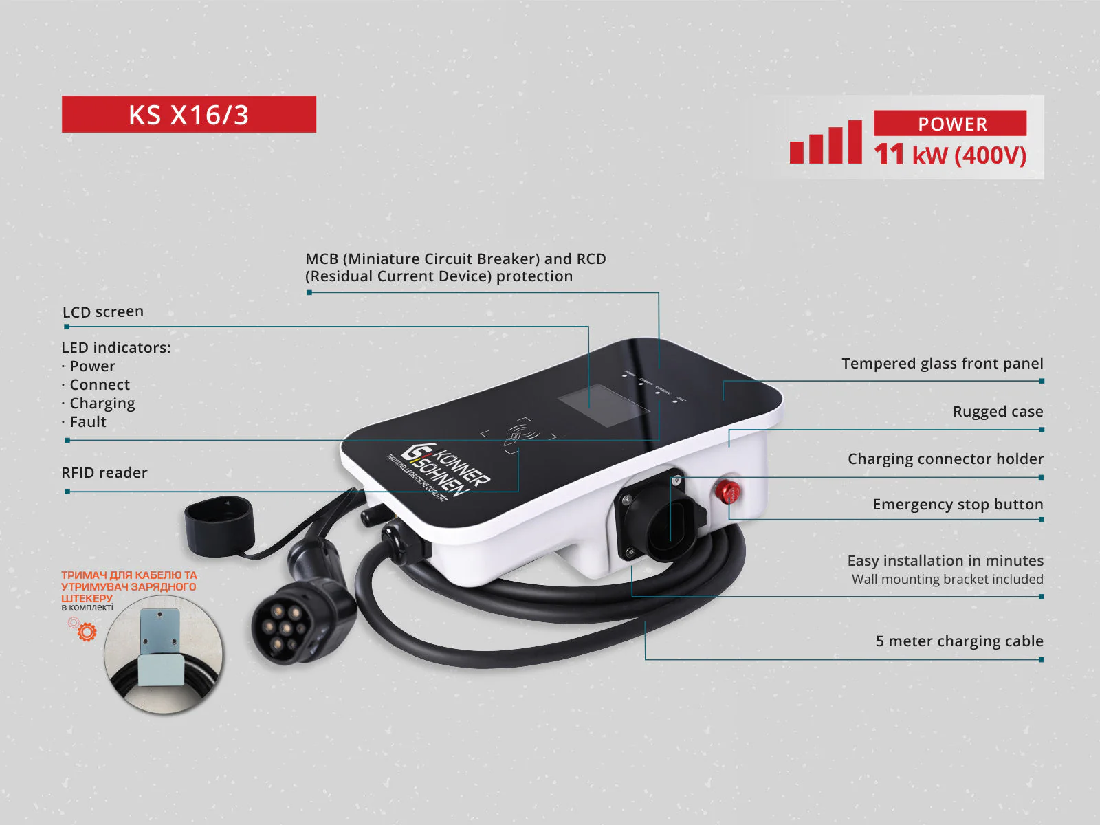 KONNER & SOHNEN Statie de incarcare pentru vehicule electrice Konner & Sohnen KS X16/3, 400 V, 11 kW, 16 A, conector tip 2