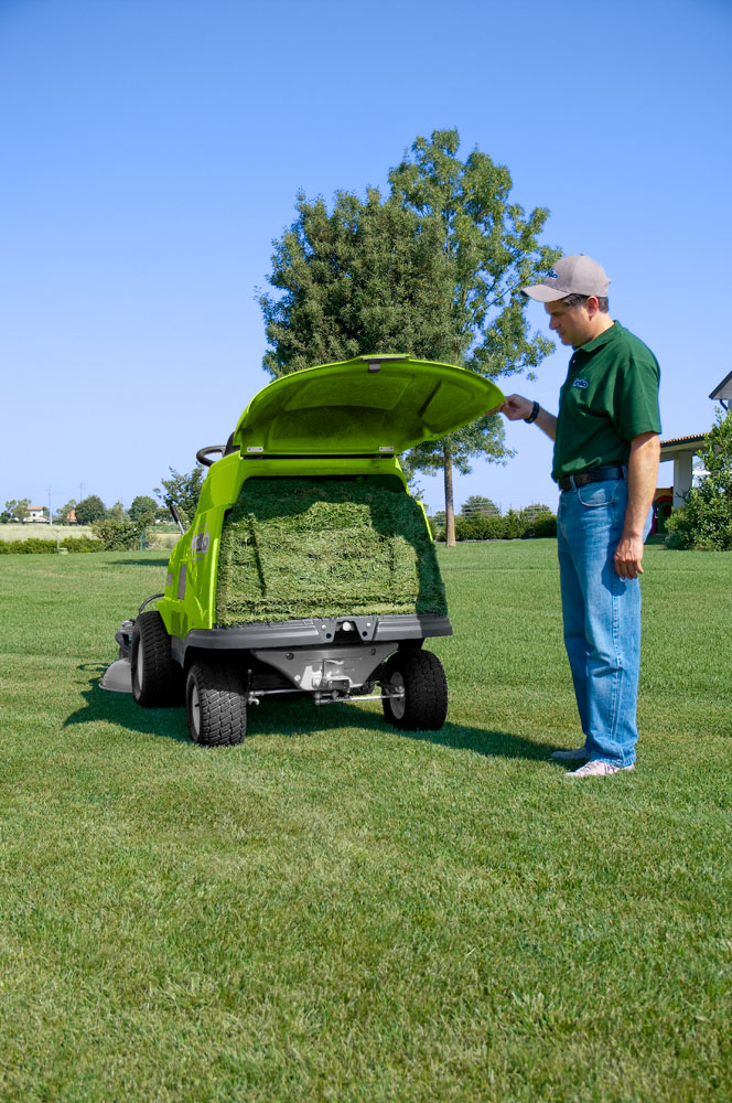 Golirea colectorului de iarba al modelului FD280 este usoara! Un cilindru electric este actionat prin intermediul unui buton de langa scaunul operatorului, iar colectorul este ridicat; apoi se va deschide automat si va fi golit complet. Deschiderea colectorului se face printr-un zavor magnetic, simplu, dar eficient!