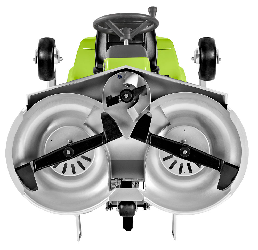 Platforma de taiere montata frontal permite o vizibilitate excelenta asupra zonei care urmeaza sa fie tunsa. Controlul se face prin intermediul unui volan, iar dimensiunile compacte si