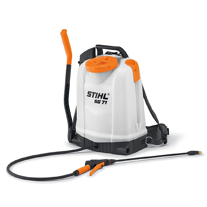 Principalul pulverizator manual de gradina STIHL SG 71 se caracterizeaza prin designul sau robust si rezervorul mare, de 18 l de agent de pulverizare, transparent, pentru o utilizare profesionala pe suprafete mari de cultura.