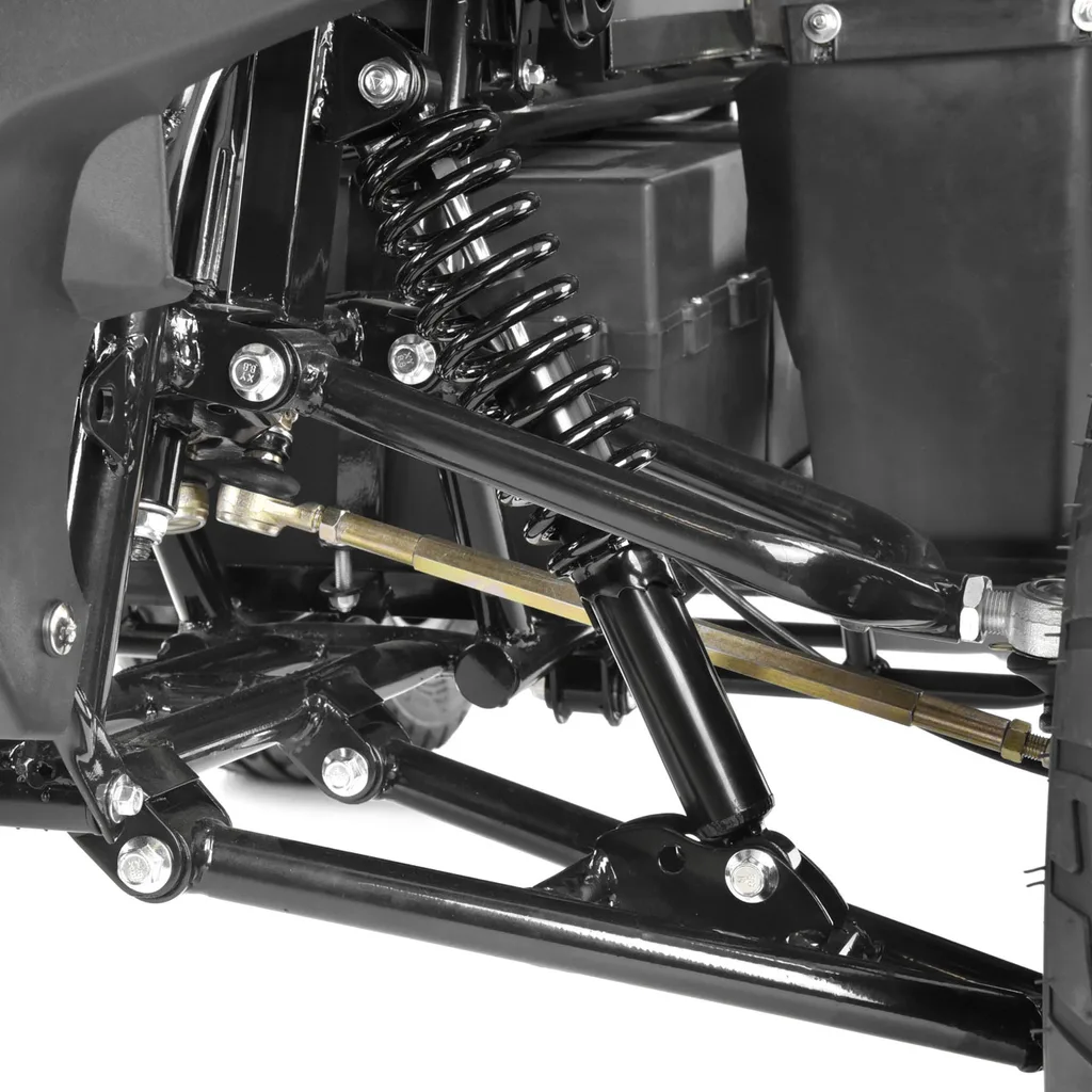 ATV-ul este echipat cu frane de tip tambur pe rotile din fata si frane de disc hidraulice pe rotile din spate. Franele de tip tambur din fata sunt actionate de o parghie de pe ghidon, iar franele cu disc hidraulice din spate sunt actionate de pedala, cu piciorul drept. Motorul este montat pe puntea spate cu suspensie, iar transmisia de la motor la punte se face prin intermediul unei cutii de viteze inchise. Rotile din fata sunt suspendate individual pe brate de suspensie separate. Pe jantele din aluminiu bine concepute sunt montate anvelope mari, cu un model adanc al benzii de rulare, asigurand o tractiune excelenta chiar si pe teren accidentat. Un tahometru digital este montat pe ghidon. Datorita aspectului sau agresiv si acceleratiei sale, vehiculul se apropie de performanta "adulta" a ATV-urilor cu motor termic. Un avantaj semnificativ este functionarea complet silentioasa si lipsa emisiilor. Astfel, poate fi utilizat in zone in care zgomotul sau mirosul emisiilor ar putea deranja mediul inconjurator.