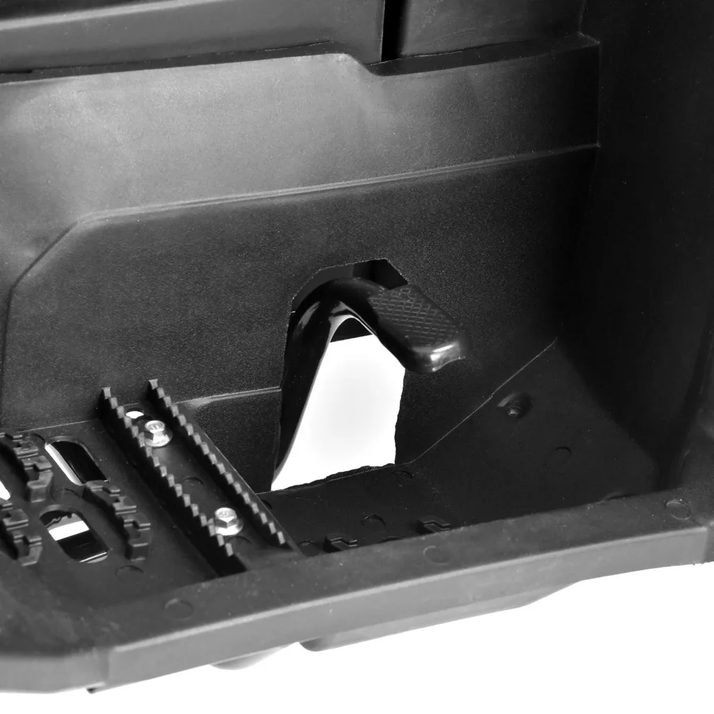 Este echipat cu o cutie de comanda fara cheie. In loc de cheie, se utilizeaza telecomanda, in prezenta careia ATV-ul se activeaza. Fara ea, partea electronica nu va porni. De asemenea, telecomanda activeaza sau dezactiveaza alarma. Pentru transportul unei incarcaturi mai mici sau a cumparaturilor, puteti utiliza suporturile fata si spate, iar vehiculul este echipat cu un dispozitiv de remorcare (bila) pentru tractarea remorcilor.