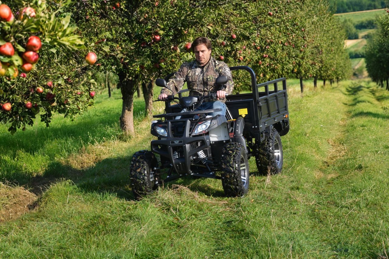 HECHT FARMIS este un ATV cu acumulator, robust si puternic, ideal pentru o mare varietate de lucrari de teren. Datorita bateriei puternice de 72 V / 52 Ah si motorului de 3000 W, acesta poate face fata sarcinilor solicitante si pantelor de pana la 30°. Caroseria spatioasa de 120 x 110 x 35 cm permite incarcari mai mari, fiind alegerea perfecta pentru agricultura, silvicultura sau lucrari de constructii.