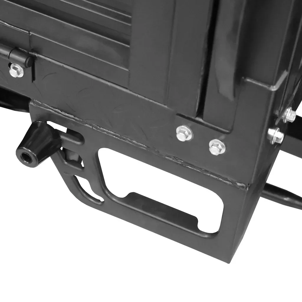 Unul dintre principalele avantaje ale cvadriciclului HECHT FARMIS este caroseria basculanta spatioasa de 150 x 110 x 43 cm, care faciliteaza transportul incarcaturilor grele. Corpul nu este doar spatios, ci si pliabil, ceea ce simplifica incarcarea si descarcarea. Fie ca trebuie sa transportati materiale de constructie, recolte sau chiar furaje, FARMIS va usureaza munca.
