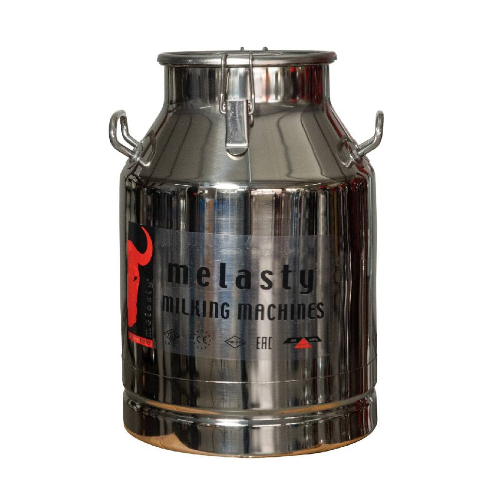 Bidon MELASTY din inox, cu capacitate de 30 de litri. Destinat transportului pentru lapte, dotat cu cleme de prindere etansa si capac.